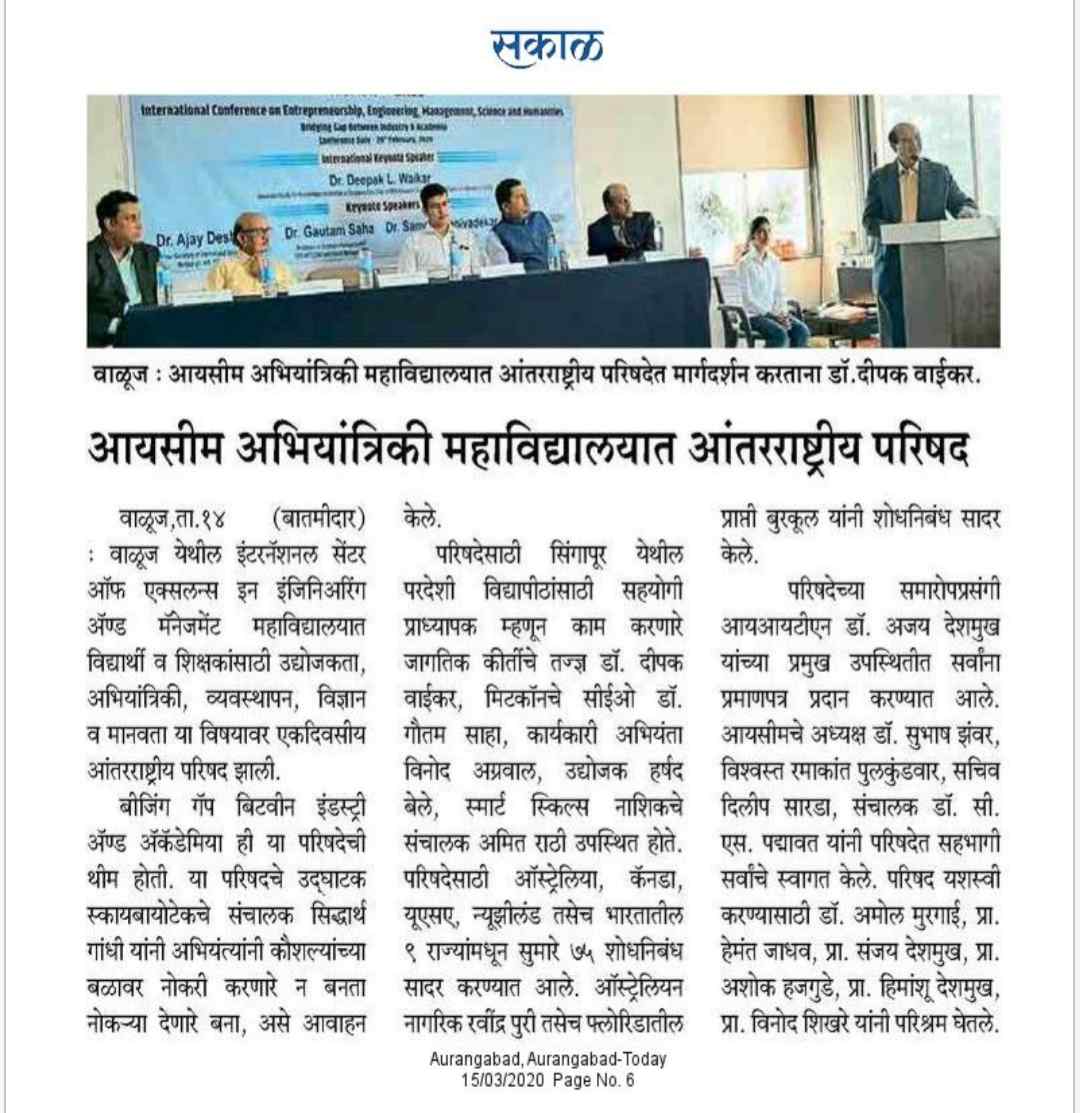 ICEEM is Aprroved by AICTE, New Delhi Recognized by DTE, (Govt, of Maharashtra) and
