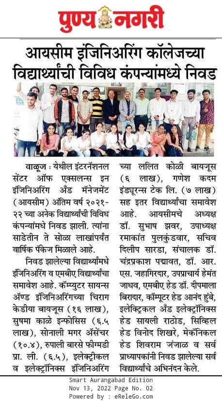 ICEEM is Aprroved by AICTE, New Delhi Recognized by DTE, (Govt, of Maharashtra) and